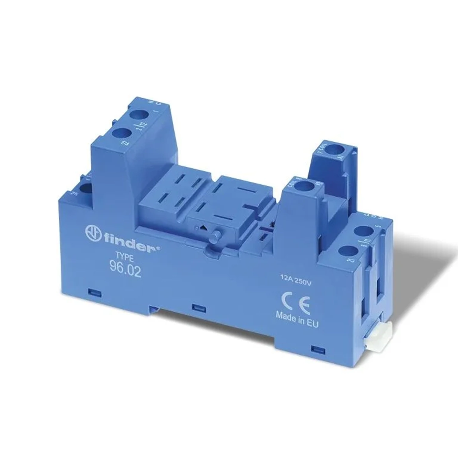 Tip 96.02 soket, vidalı (kutu kelepçeli) terminaller, panel veya 35 mm ray (EN 60715) montajı. Tip 56.32 rölelerle birlikte kullanılır.