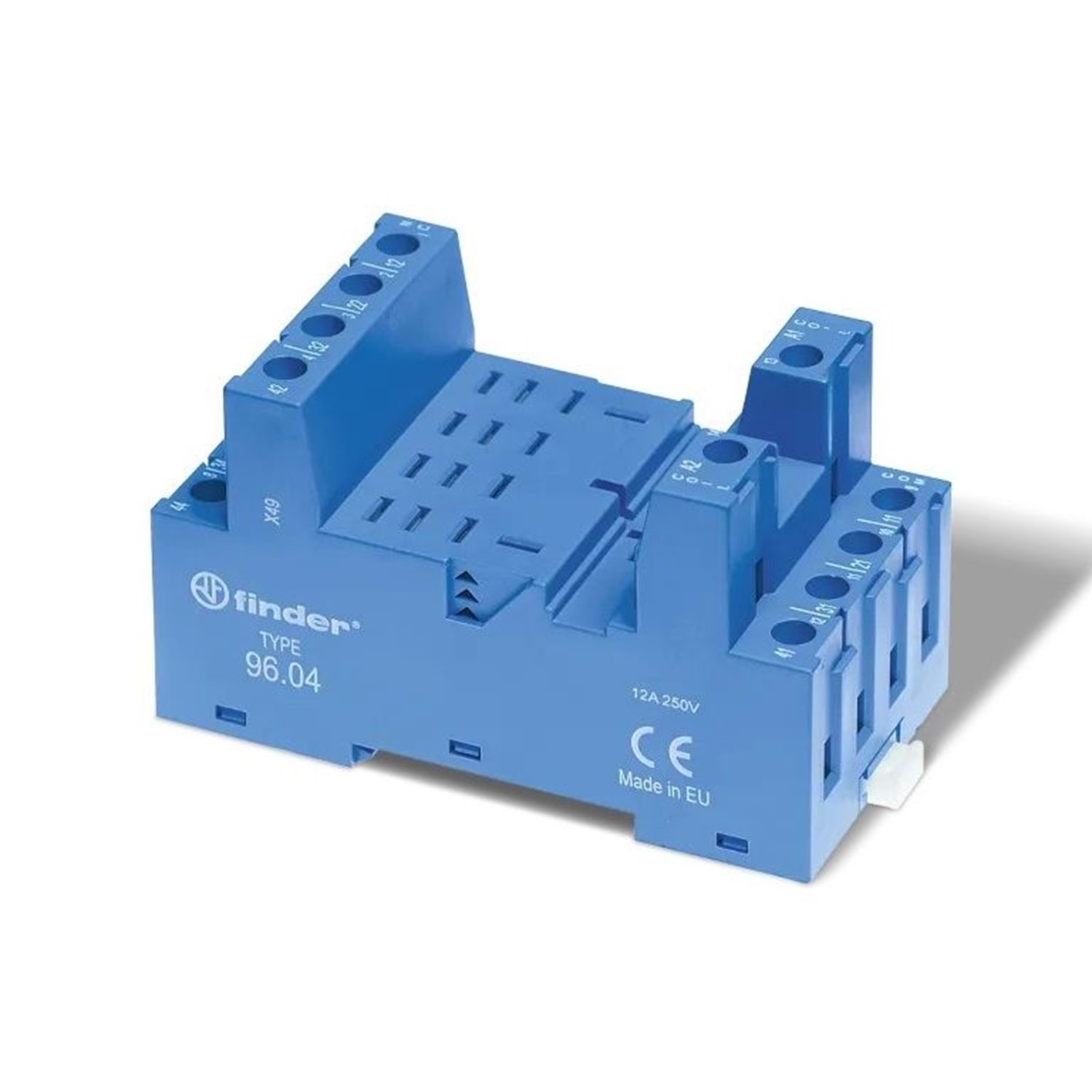 Tip 96.04 soket, vidalı (kutu kelepçeli) terminaller, panel veya 35 mm ray (EN 60715) montajı. Tip 56.34 rölelerle birlikte kullanılır.